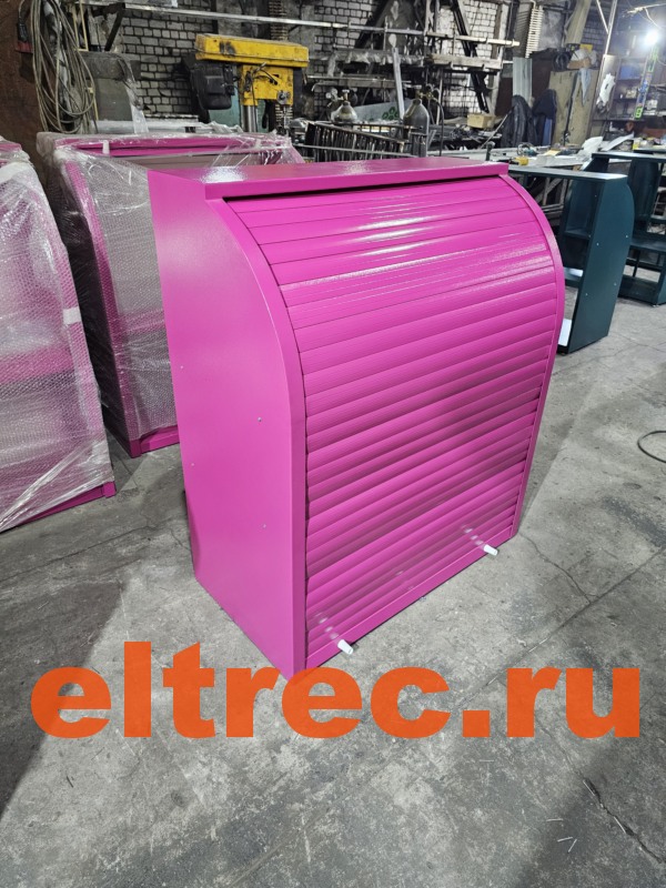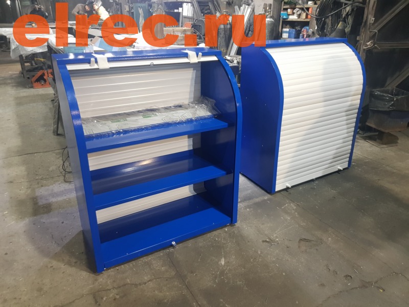 Лицевая сторона витрины имеет закрывающуюся шторку - роллету из алюминиевого профиля