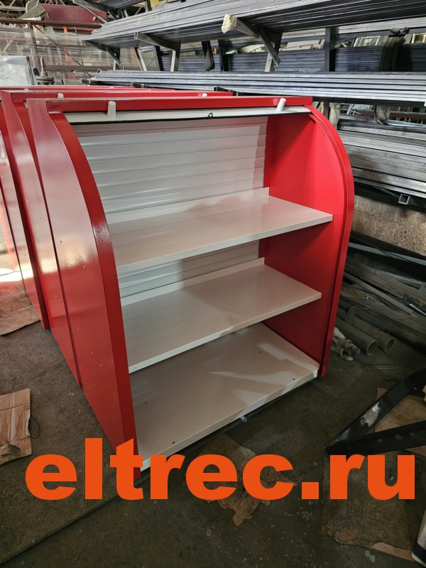 Лицевая сторона витрины имеет закрывающуюся шторку - роллету из алюминиевого профиля